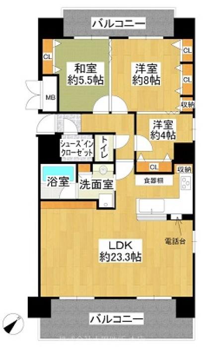 ●両面バルコニーのオール電化物件